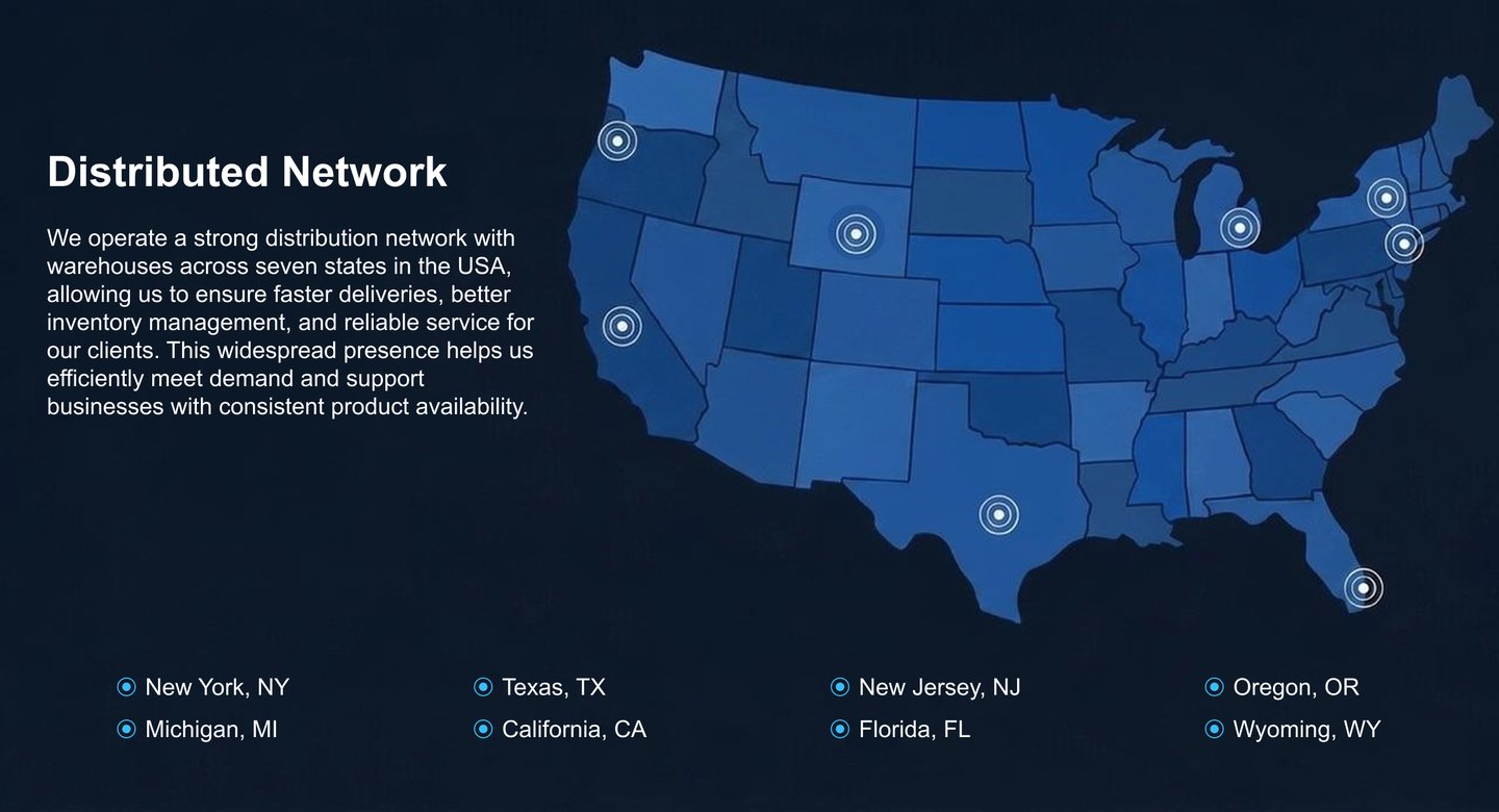 Strategically located warehouses in the USA for efficient wholesale distribution